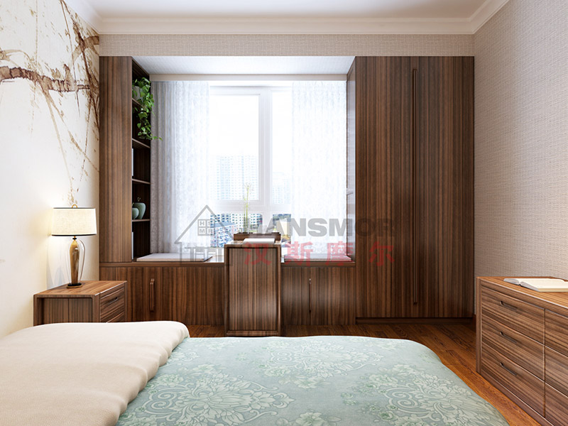 嵌入式衣柜,将衣柜嵌入设计在厚墙中(非承重墙),能够减少居室占地,有效扩大家居生活空间,且柜子与墙体为一个整体平面,和谐美观。