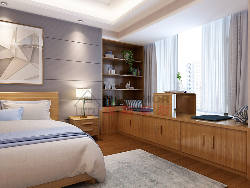 3、如飘窗主要用作收纳,建议靠窗设计,既方便使用,也能保证从外往里看的整洁。