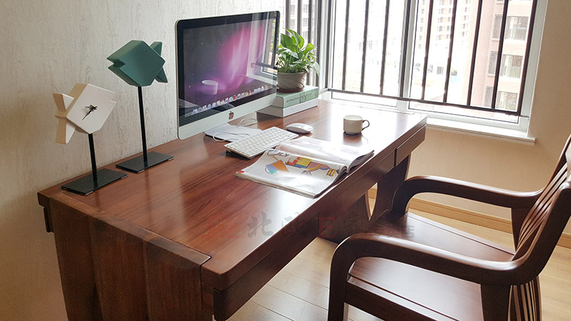 这样的书房为业主提供了一方静谧的书香空间,用小鱼形状的装饰品来点缀书房,增添了几分活泼可爱。实木扶手椅符合人体工程学靠背弧度设计,支撑人体腰椎,有效的环节腰部肌肉的应力,分散身体烦人承重力,有利于放松腰颈椎,;人性化的圆润扶手设计时刻保护着您和您家人的安全。