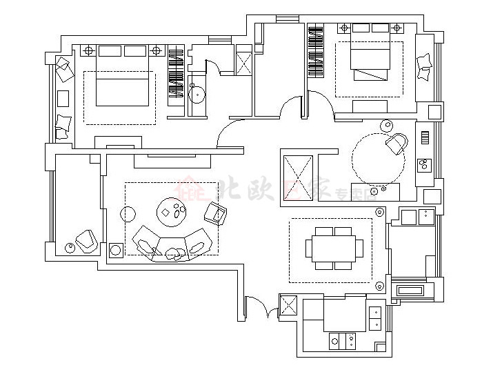 主卧搭配的是风尚2049系列的黑胡桃家具,比较沉稳大气;儿童房则选择了该系列的榆木材质家具,搭配清新自然的床品,使空间显得更加的温馨舒适。