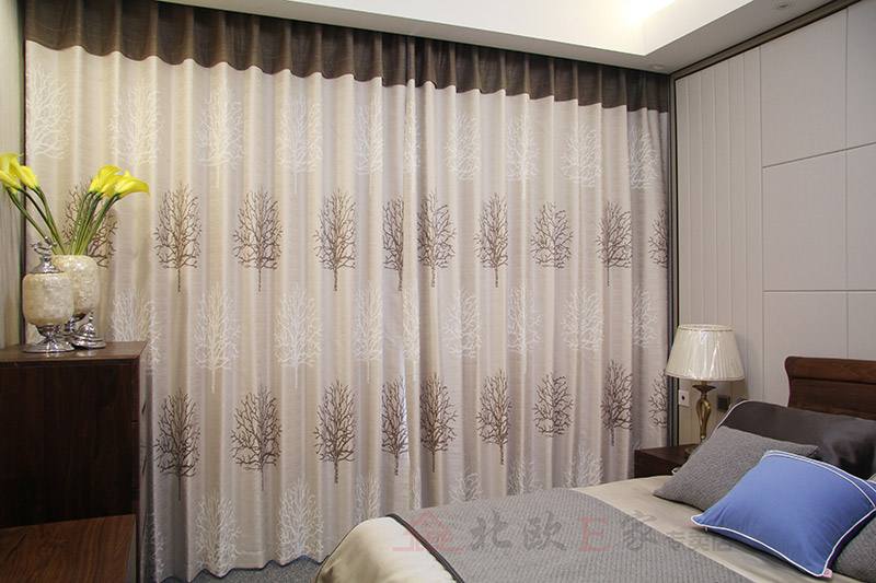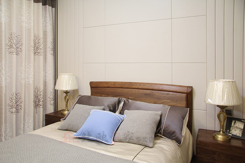 帘属于家庭装修中的软装环节,不仅起到外在的作用,它还能起到点缀房间、美化装修效果的作用。主卧室选了一款浅咖啡色的窗帘,和素色的墙壁很搭调使房间显得幽雅而不冷清。