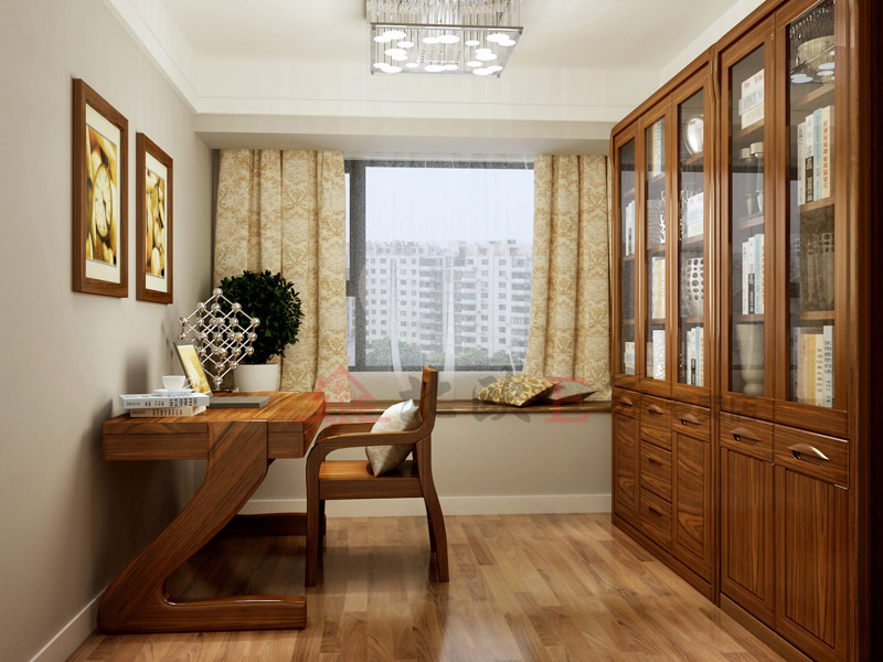 Z字形腿设计的写字台很厚实吧,赛鞋木豆材质的,耐冲撞,稳定性极好;后方大大的书柜不仅可以放些书籍,还能放点装饰品。