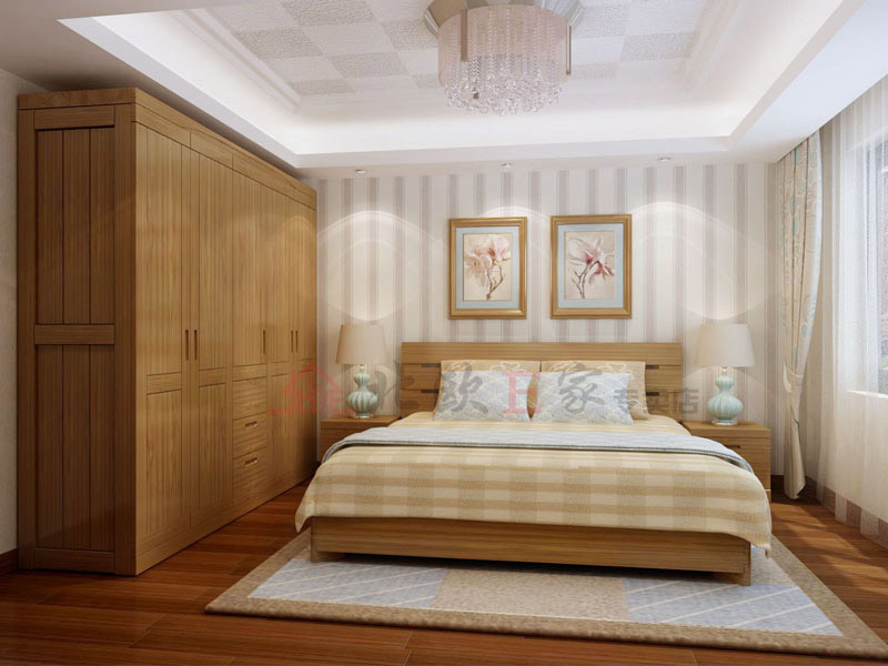 简约大方的双人床是俄罗斯老榆木材质的,耐冲撞,稳定性特别好;五门衣柜很厚实,收纳量也大,可以放很多衣服。