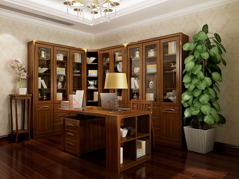 公公有很多藏书,所以书房也要选好的家具。写字台是赛鞋木豆材质的,耐冲撞,稳定性好,左侧还有四个方格,可以放点装饰品啥的。后面大大的书柜是转角的,安上了玻璃门,可以起到防尘作用。